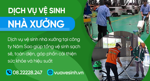 Dịch vụ vệ sinh nhà xưởng tại công ty Năm Sao giúp tổng vệ sinh sạch sẽ, toàn diện, góp phần cải thiện sức khỏe và hiệu suất